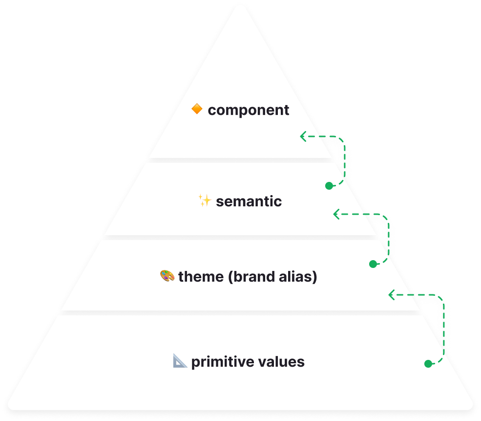 Theme tokens are role based tokens that map based on a brand’s visual language. Roles are the first step to creating meaning with our values and allow us to curate design decisions specifically through the lens of a brand.